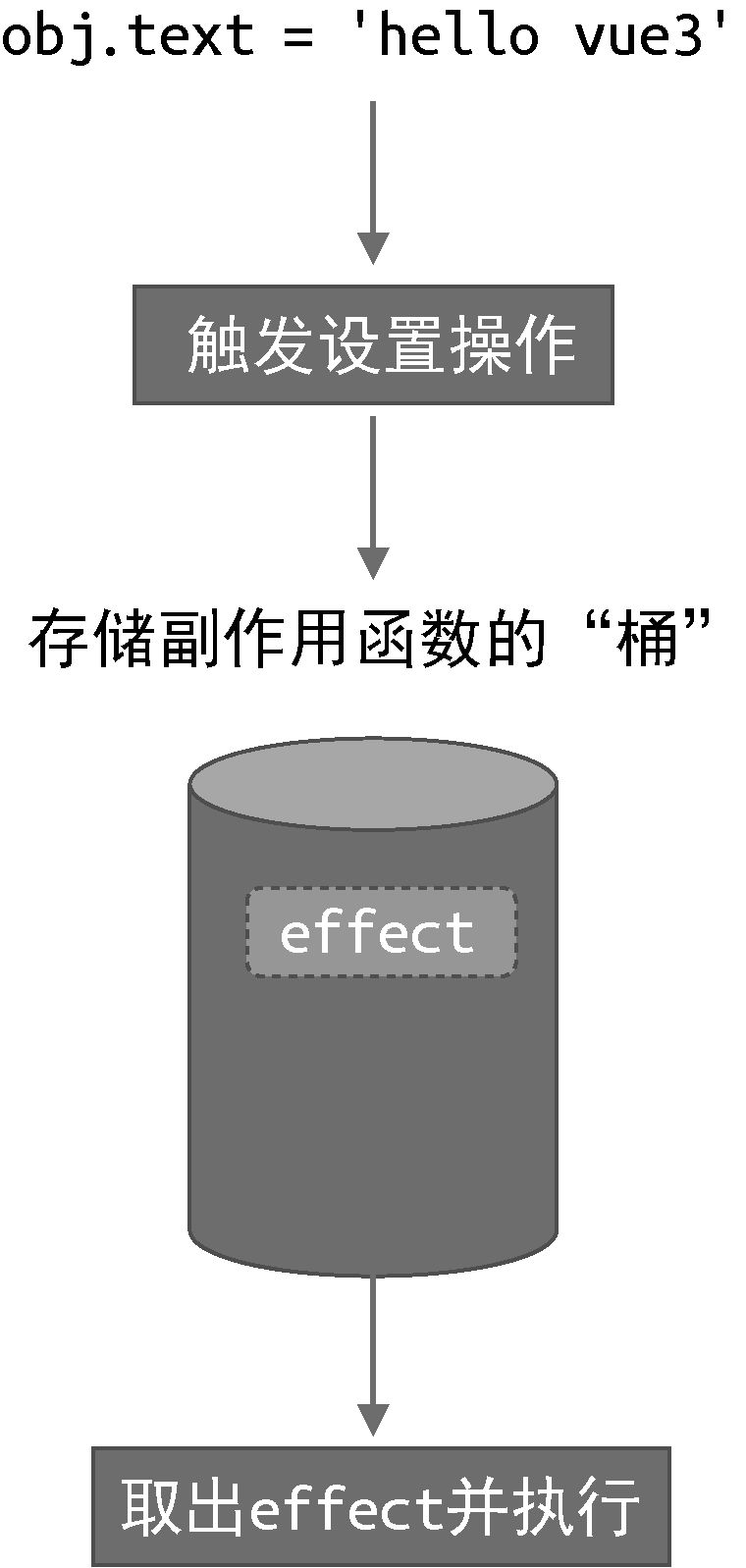 接着,当设置 obj.text 时,再把副作用函数 effect 从“桶”里取出并执行即可,如图 4-2 所示。